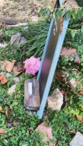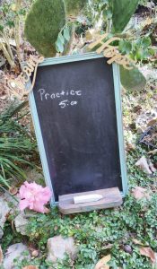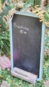 Chalkboard picture has small ledge at bottom to hold chalk. Could also have hooks to hank a bucket from to hold the chalk.