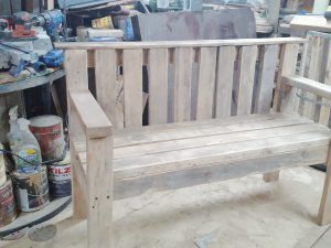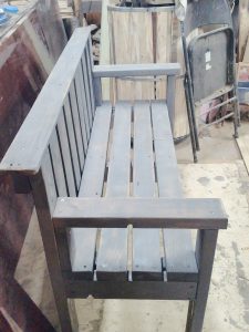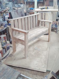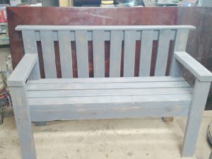 Garden bench from 2×4’s. This bench is 48 inches long. arms are 3 1/2 by 18 inches long. Seat height is 18 inches.