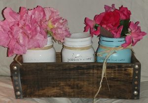 It has been made to fit three quart size mason jars but could be sized to fit pint size or even gallon sized jars.