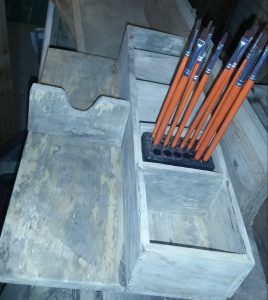 This not only holds your glue gun, it has room for your paint brushes, glue sticks and other craft material to finish your project all in one place.