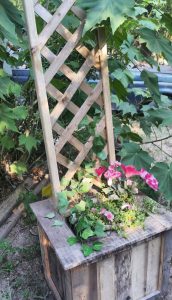 This planter comes with our without the lattice backing.  On the inside it has a small shelf so you can put smaller plants in with out them being swallowed.  Or the shelf can be left out so you can have a mammoth plant in there.