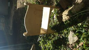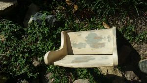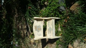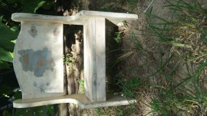 This little bench is the perfect size for the 18 inch American girl doll. It has an old rustic look but could easily be an updated finish.  It would also be cute to sit a small plant on in a sunny spot.